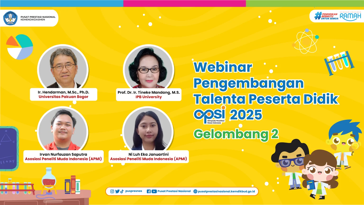 Arsip Berita All Pengembangan Kapasitas Pemandu Talenta OPSI 2025 Oktober 10, 2025 Webinar Pengembangan Talenta Peserta Didik OPSI 2025 – Gelombang 2 Oktober 7, 2025 Webinar Pengembangan Talenta Peserta Didik OPSI 2025 – Gelombang 1 Oktober 7, 2025 Pengumuman dan Pemanggilan Peserta Eshibisi Kecerdasan Artifisial (AI) Oktober 3, 2025 Revisi Panduan Ajang Olimpiade Olahraga Siswa Nasional (O2SN) Dikdas dan Dikmen September 27, 2025 Pengumuman Peserta Babak Final FLS3N Jenjang Pendidikan Dasar Tahun 2025 September 21, 2025